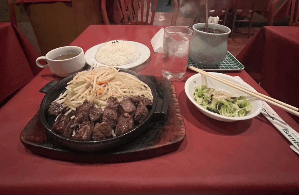 実はメニューが豊富でいろいろあるのですが、ぼくは初心者ということで、もちろんサイコロステーキを注文します。